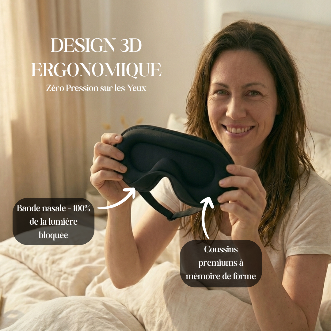 Découvrez une nouvelle manière de dormir avec notre masque 3D en soie de mûrier. Sa combinaison de soie ultra-douce, de mousse à mémoire de forme et de structure 3D ergonomique crée un cocon de confort qui bloque 100 % de la lumière.